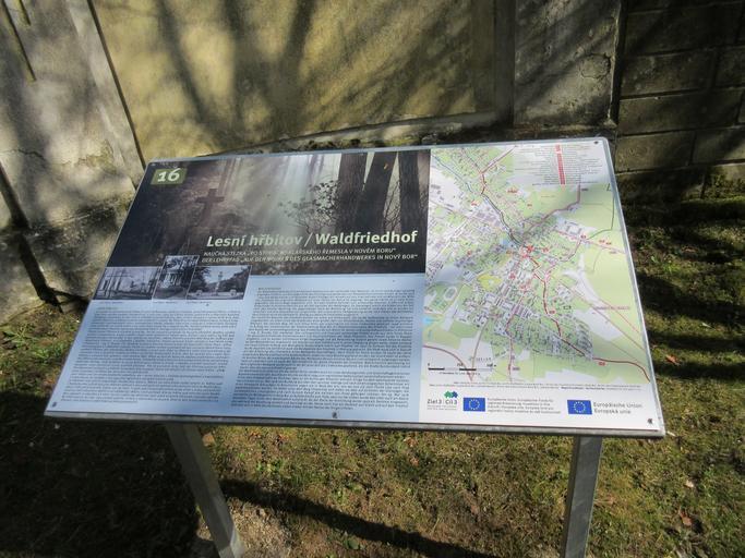 Keywords: Hřbitov Bor 9.JPG cs Infodeska naučné stezky u vchodu do hřbitova own Zákupák 2015-04-09 Lesní hřbitov Nový Bor Sklářská stezka Nový Bor