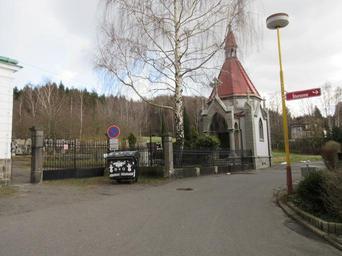 Keywords: Hřbitov NB Arnultovice 1.JPG cs Vstup do hřbitova v Arnultovicích own Zákupák 2015-04-04 Cemetery Arnultovice Nový Bor Taken with Canon Digital IXUS 265 HS