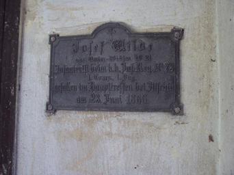 Keywords: Hřbitov Vidim 4.JPG cs Na zdi hřbitovní kaple ve Vidimi je deska Josef Wilde own Zákupák 2013-05-15 Cemetery in Vidim Plaques in Mělník District