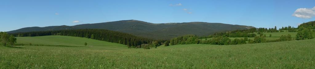 Keywords: HrebenMedvedihoVrchuAOrliku.jpg cs Pohled na hřeben Medvědího vrchu 1216 m a Orlíku 1203 m od východu u Heřmanic own Martin Vavřík 5 6 2010 Medvědí vrch