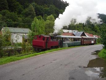 Keywords: Hronec CHZ steam engine.JPG Čierny Hron Railway pulled by a steam engine is approaching Hronec from the direction of Čierny Balog 2014-08-21 12 25 31 own Jan Pešula cc-zero Uploaded with UploadWizard Čiernohronská železnica Hronec