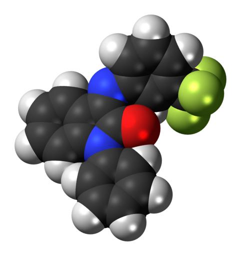 | Keywords: HT-2157 molecule spacefill.png Space-filling model of the HT-2157 molecule a GAL-3 receptor antagonist C H O N F 2015-01-08 own DS Visualizer Jynto more from this user Ball-and-stick version cc-zero Images by Jynto Indolones Imines Trifluoromethylbenzenes Space-filling models |