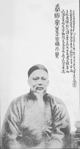 | Keywords: Huang Shi ling.JPG A photo portrait of Huang Shi ling 1849-1908 with his original calligraphy inscription on upper part in 1902 黄士陵肖像写 黄士陵の肉筆 題字付 1902年 SHU PU volume 17th 1977 Shu Pu Publishing Co Hong Kong 書 出版社 香港 1977年第4 総第17 1902 Black and white photographic portraits of men PD-old |
