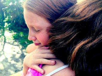 Keywords: hug grief sisters sad depression forgiveness childhood depressed young upset emotion sadness unhappy child kid