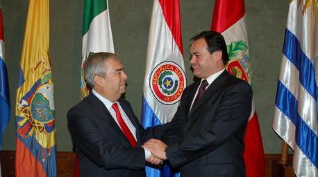 | Keywords: Hugo saguier.JPG Hugo Saguier Caballero izquierda junto a Ruben Ramirez Lezcano Ministro de Relaciones Exteriores del gobierno de Nicanor Duarte Frutos Own Fersaguier Taken by the author with is own camera Foreign ministers of Paraguay Bernardino Hugo Saguier Caballero |