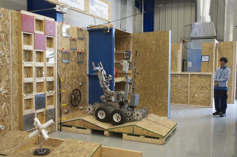 | Keywords: Hui Min Huang with robot (9028689456).jpg Hui-Min Huang NIST software/mechanical engineer observes a Montgomery County Bomb Squad robot attempt to turn various sizes of valve hand wheels in the Push/Pull/Rotary Forces test method Development of test methods at the NIST Robot Test Facility is funded in part by the NIST Office of Law Enforcement Standard's Counterterrorism and Response Technologies program Learn more about this program at http //www nist gov/oles/counterterrorism_response cfm www nist gov/oles/counterterrorism_response cfm Credit NIST Disclaimer Any mention of commercial products within NIST web pages is for information only; it does not imply recommendation or endorsement by NIST Use of NIST Information These World Wide Web pages are provided as a public service by the National Institute of Standards and Technology NIST With the exception of material marked as copyrighted information presented on these pages is considered public information and may be distributed or copied Use of appropriate byline/photo/image credits is requested https //www flickr com/photos/usnistgov/9028689456/ Hui Min Huang with robot 2013-05-15 11 03 https //www flickr com/people/63059536 N06 National Institute of Standards and Technology PD-USGov National Institute of Standards and Technology https //flickr com/photos/63059536 N06/9028689456 2016-09-07 01 51 25 United States Government Work Uncategorized 2016 November 1 |