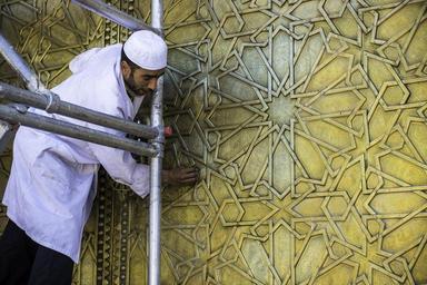 | Keywords: maroc fes porte bronze cuivre nettoyage outdoor Le roi du Maroc sensé venir ouvrir cette porte à Fes au Maroc dans quelques jours. Nettoyage général. Ici, le bronze de cette gigantesque porte est poli, cm2 par cm2. Le roi du Maroc sensé venir ouvrir cette porte à Fes au Maroc dans quelques jours. Nettoyage général. Ici, le bronze de cette gigantesque porte est poli, cm2 par cm2. |