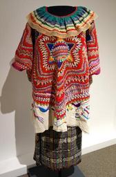 | Keywords: Huipil, Chuj Maya, San Mateo Ixtatan, mid 20th century, cotton and synthetic, and skirt, Maya, Guatemala, mid 20th century, cotton, metallic thread - Textile Museum of Canada - DSC01400.JPG en Exhibit in the Textile Museum of Canada 55 Centre Avenue Toronto Ontario Canada Photography was permitted in the museum without restriction 2013-07-04 15 14 29 own Daderot cc-zero Maya textiles in the Textile Museum of Canada Uploaded with UploadWizard | ||||