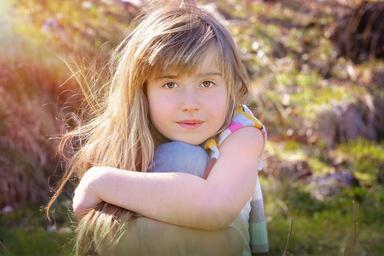 Keywords: human child girl blond long hair face out nature portrait