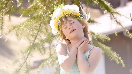 Keywords: human child girl face in thoughts dreamy spring headdress out nature portrait
