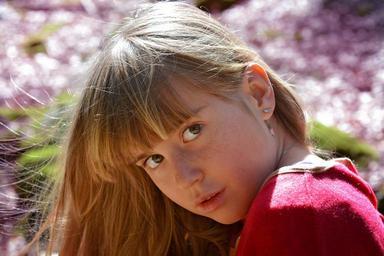 Keywords: human child girl face view long hair blond out