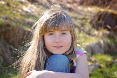Keywords: human child girl face pretty blond long hair relaxed rest view out nature portrait