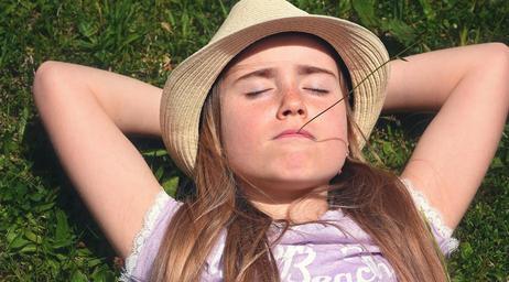 Keywords: human child girl meadow concerns relax enjoy nature blade of grass hat face close