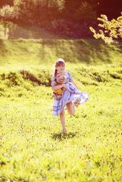 Keywords: human child girl run dress teddy teddy bear meadow nature out