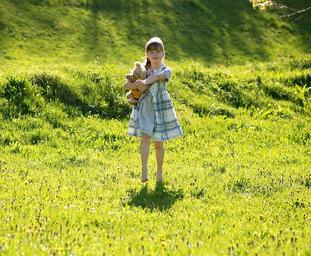 Keywords: human child girl teddy bear meadow green nature out