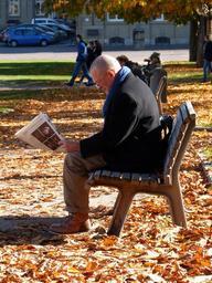 Keywords: human man break read newspaper park bank