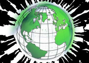 Keywords: human silhouettes leg earth globe stand world continents environment overpopulation personal shadow presentation