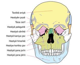 | Keywords: Human skull front bones ku.svg Anatomiya Serî Çavkanî KurmancÃŽ kovar hejmar 3 havîn 1988 the adult skull is normally made up of 22 bones Except for the mandible all of the bones of the skull are joined together by sutures semi-rigid articulations formed by bony ossification the presence of Sharpey's fibres permitting a little flexibility Le crâne humain adulte est constitué de 22 os A l'exeption de la mandibule tous les os du crâne sont reliés entre eux par des sutures articulations semi-rigides formées par ossification La présence des fibres de Sharpey permettent une certaine flexibilité O crânio humano adulto é constituÃdo por 22 ossos à excepção da mandÃbula todos os ossos do crânio encontram-se ligados por suturas articulações semi-rÃgidas formadas por ossificação com a presença de fibras de Sharpey permitindo alguma flexibilidade Human_skull_front_bones svg 2010-08-17 00 00 UTC Human_skull_front_bones svg LadyofHats Mariana Ruiz Villarreal derivative work Alkd <span class signature-talk >talk</span> Human_skull_front_bones svg Original upload log This image is a derivative work of the following images File Human_skull_front_bones svg licensed with PD-user 2007-01-25T11 14 53Z Amada44 695x563 150965 Bytes <nowiki>removed bitmap parts of within the SVG file and replaced by vectors</nowiki> 2007-01-10T15 13 45Z LadyofHats 376x364 323017 Bytes <nowiki>make lines wider</nowiki> 2007-01-10T14 59 43Z LadyofHats 376x364 322794 Bytes <nowiki>outlined text to aboid overlaping</nowiki> 2007-01-10T14 58 21Z LadyofHats 376x364 262824 Bytes <nowiki>fixed version as the side ones</nowiki> 2007-01-06T02 52 11Z LadyofHats 475x434 335789 Bytes <nowiki>corrected typo</nowiki> 2007-01-06T01 48 24Z LadyofHats 475x434 338940 Bytes <nowiki> the adult skull is normally made up of 22 bones Except for the mandible all of the bones of the skull are joined together by sutures semi-rigid articulations formed by bony ossification the pres</nowiki> SVG files on human skull Diagrams in Kurdish |
