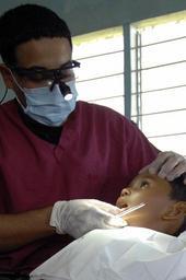 | Keywords: Humanitarian mission at Mabaruma Library DVIDS128333.jpg en U S Public Health Service Lt Cmdr Robert Reyes a dentist embarked aboard the amphibious assault ship USS Kearsarge provides dental care to a Guyanese child at a medical clinic set up at the Mabaruma Library during the humanitarian/civic assistance mission Continuing Promise 2008 Kearsarge is supporting the Caribbean phase of CP 2008 an equal-partnership mission between the United States Canada the Netherlands Brazil Nicaragua Colombia Dominican Republic Trinidad and Tobago and Guyana 2008-11-10 Seaman Ernest Scott https //www dvidshub net/image/128333 081110-N-+++++-101 2008-11-13 00 16 MABARUMA GY PD-USGov-Military-Navy USS Kearsarge LHD-3 Images from DoD uploaded by Fæ |