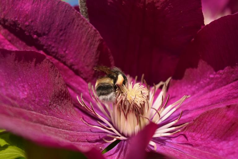 Keywords: hummel blossom bloom purple insect close food flower pollen