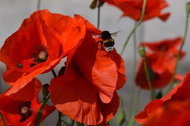 Keywords: hummel poppy flower flowers landing fly food hard working collect sprinkle close red summer beautiful
