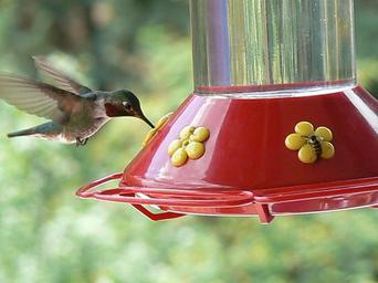 MAKE A MEME View Large Image Hummingbird and Bee.jpg Ruby-throated Hummingbird and wasp g 2 12 08 Garrett Davis Archilochus colubris in flight male Hummingbirds feeding