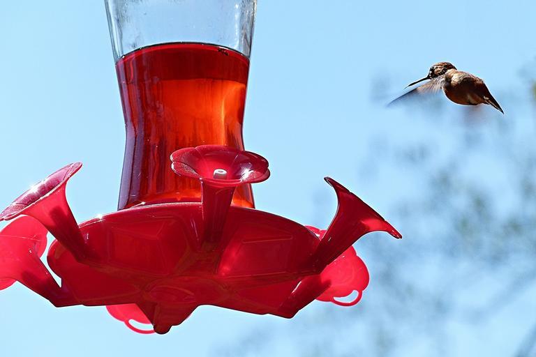 Keywords: hummingbird bird feeding station flying fly humming tiny feeder