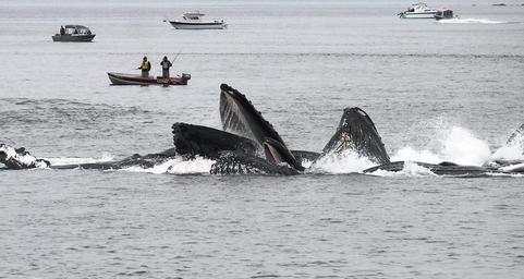 | Keywords: Humpback Bubble Net 2.JPG Humpback whales in North Pass between Lincoln Island and Shelter Island in the Lynn Canal north of Juneau Alaska This is a group of 15 whales that were bubble net fishing on 18 August 2007 Own 2007-08-18 Evadb Megaptera novaeangliae Cetaceans of Alaska |