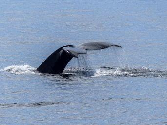 Keywords: humpback whale tail fin natural spectacle nature mammal animal wildlife colossus aquatic ocean water splash pacific fin head lob tailing maritime life island green island british columbia canada
