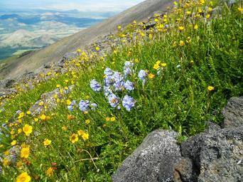 | Keywords: arizona brent johnston brentjohnston coconino national forest coconinonationalforest flagstaff flagstaff ranger district flagstaffrangerdistrict humphreys trail humphreystrail humphreys trail no. 51 humphreystrailno51 kachina peaks wilderness kachinapeakswilderness national forest nationalforest san francisco mountain sanfranciscomountain san francisco peaks sanfranciscopeaks varileaf cinquefoil varileafcinquefoil alpine tundra alpinetundra composite volcano compositevolcano flower forest hike hiking outdoors polemonium visosum polemoniumvisosum potentilla diversifolia potentilladiversifolia sticky jacob's ladder stickyjacobsladder strato volcano stratovolcano trail volcano wilderness wildflower united states unitedstates outdoor Varileaf cinquefoil (potentilla diversifolia) and sticky Jacob's Ladder (polemonium visosum). View along Humphreys Trail No. 50. The trail starts at the Arizona Snowbowl and winds steeply up to Humphreys Peak, the highest point in Arizona at 12,633 feet. Humphreys Peak is one of several named peaks in the San Francisco Peaks (aka San Francisco Mountain or simply "the Peaks"). The mountain is an extinct stratovolcano. The 5+ mile hike ascends over an elevation gain of over 3,000 feet, and generally take 6 to 8 hours to complete. Brent Johnston of the Coconino National Forest took this photo on a weekend family hike, July 24, 2015. Credit: U.S. Forest Service, Coconino National Forest. For more information about this trail, see the Humphreys Trail No. 51 trail description on the Coconino National Forest website. Varileaf cinquefoil (potentilla diversifolia) and sticky Jacob's Ladder (polemonium visosum). View along Humphreys Trail No. 50. The trail starts at the Arizona Snowbowl and winds steeply up to Humphreys Peak, the highest point in Arizona at 12,633 feet. Humphreys Peak is one of several named peaks in the San Francisco Peaks (aka San Francisco Mountain or simply "the Peaks"). The mountain is an extinct stratovolcano. The 5+ mile hike ascends over an elevation gain of over 3,000 feet, and generally take 6 to 8 hours to complete. Brent Johnston of the Coconino National Forest took this photo on a weekend family hike, July 24, 2015. Credit: U.S. Forest Service, Coconino National Forest. For more information about this trail, see the Humphreys Trail No. 51 trail description on the Coconino National Forest website. |