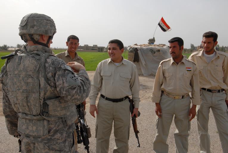 Keywords: Humvee maintenance in Haswah DVIDS154074.jpg en U S Army 1st Lt Andrew Williams of Colorado Springs Colo and 2nd Platoon Charlie Troop 1st Squadron 10th Cavalry Regiment 2nd Brigade Combat Team 4th Infantry Division talks to members of the Sons of Iraq about new uniform changes at a checkpoint in Haswah Iraq on Feb 26 2009-02-26 https //www dvidshub net/image/154074 090226-N-+++++-065 2009-03-01 16 56 HASWAH IQ PD-USGov-Military-Navy Sons of Iraq Images from DoD uploaded by Fæ |