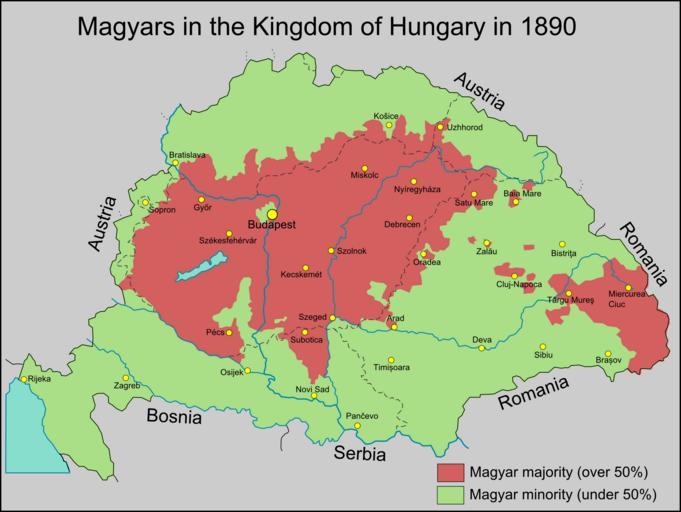 | Keywords: HungariansInHungary1890.png en wikipedia 2010 July 1 Distribution of Magyar majorities in the Kingdom of Hungay according to the 1890 census Transferred from http //en wikipedia org en wikipedia; transferred to Commons by User Sreejithk2000 using http //tools wikimedia de/~magnus/commonshelper php CommonsHelper <br/> Original text self-made based on File Magyars_ Hungarians _in_Hungary _census_1890 jpg 2009-12-29 User Scooter20 Original uploader was Scooter20 at http //en wikipedia org en wikipedia Released into the public domain by the author en wikipedia Scooter20 Original upload log page en wikipedia HungariansInHungary1890 png 2009-12-29 15 21 Scooter20 1892×1422× 478701 bytes <nowiki>Fixed misplaced Osijek and Novi Sad</nowiki> 2009-12-29 11 26 Scooter20 1900×1429× 480238 bytes <nowiki>Distribution of Magyar majorities in the Kingdom of Hungay according to the 1890 census </nowiki> Historical maps of ethnic groups in Hungary |