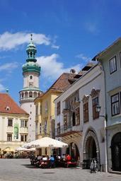 Keywords: hungary sopron hungary main square fire tower architecture city street