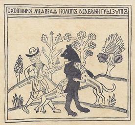 | Keywords: HunterLubok.jpg The hunter impales the bear and the dogs bite it Russian lubok Охотник медведя колет а собаки г ызут Лубок http //www zeno org/Kunstwerke/B/Russischer+Holzschneider+um+1800 3A+Der+J C3 A4ger+sticht+den+B C3 A4r hl lubok ca 1800 Anonymous folk artist PD-Art Lubok People with dogs in art People with bears in art Bear hunting in art Images from zeno org |