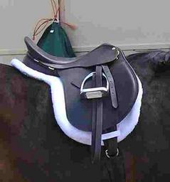 Keywords: HuntSaddlePad.jpg A hunt seat style saddle with shaped saddle pad suitable for hunter and hunter under saddle classes USA Own 2007-05-06 Montanabw Saddles Saddle blankets