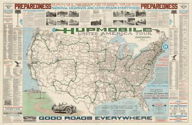 | Keywords: Hupmobile United America Tour, 1918 WDL11559.png Artwork ru ациональная ассоциация автомагист алей fr National Highways Association en National Highways Association zh 国家公路协会 pt National Highways Association ar الهيئة الوطنية للطرق السريعة es Asociación Nacional de Carreteras ru Автоп обег Единая Аме ика на автомобиле Хапмобил 1918 г fr Tour de l'Amérique unie en Hupmobile 1918 en Hupmobile United America Tour 1918 zh 普莫比尔团结美国之旅,1918 年 pt Turnê América Unida em Hupmobile 1918 ar جولة في الولايات المتحدة بالهبموبيل، 1918 ru Эта ка та была издана в 1918 г ациональной ассоциацией автомагист алей а ней показан ма ш ут автоп обега Единая Аме ика о ганизованного ко по ацией Hupp Motor Car под эгидой Аме иканской автомобильной ассоциации и ациональной ассоциации автомагист алей и п изванного положить начало новой качественной до оге кото ая п ойдет че ез все столицы и к упнейшие го ода США Автоп обег ста товал 28 августа 1916 г в Вашингтоне ок уг Колумбия и заве шился в том же го оде 9 янва я 1917 г Этот автомобильный ту п отяженностью 19 861 миля 31 963 км охватил столицы всех 48 штатов кото ые входили в то в емя в состав США ациональная ассоциация автомагист алей была основана в 1911 г в целях оказания содействия азвитию в США национальной сети качественных автомобильных до ог Выдвинув лозунг Хо ошие до оги всем ациональная ассоциация автомагист алей выступила за создание четы еху овневой системы автодо ог п отяженностью 150 000 миль 241 402 км состоящей из автомагист алей и до ог кото ые войдут в сфе у компетенции феде ального п авительства штатов ок угов и го одов либо айонов в составе ок угов Создатели ка ты связывали необходимость ст оительства хо оших до ог с кампанией по повышению готовности азве нутой вско е после начала Пе вой ми овой сто онниками вступления США в войну в качестве союзника Великоб итании и Ф анции В п имечании к ка те сообщается что автоп обег осуществлялся на се ийном пятиместном автомобиле Хапмобил изоб ажение кото ого п едставлено в левом нижнем углу ка ты Компания Hupp Motor Car была основана в 1908 г в Дет ойте Робе том К ейгом Хаппом и его б атом Луисом Го эмом Хаппом Компания ши око п именяла новато ские технические аз аботки и в 20-е годы XX века составляла се ьезную конку енцию таким автоп оизводителям как Фо д и Шев оле Тем не менее в пе иод Великой деп ессии 1930-х гг финансовое положение компании пошатнулось и в 1939 г она п ек атила п оизводственную деятельность <br>Аме иканская автомобильная ассоциация; Автомобильные путешествия; Компания Hupp Motor ; До оги fr Cette carte émise en 1918 par la NHA Association nationale pour les grandes routes montre la route du tour de l'Amérique unie Entrepris par la Hupp Motor Car Corporation sous les auspices de l'American Automobile Association l'objectif consistait à « promouvoir une nouvelle route praticable qui passerait par toutes les capitales et les villes majeures des États-Unis » Le tour partit de Washington district de Columbia le 28 août 1916 et se termina dans la même ville le 9 janvier 1917 après avoir fait escale dans les capitales de tous les États au nombre de 48 à l'époque et parcouru au total 31 963 kilomètres 19 861 miles La NHA fut établie en 1911 pour promouvoir le développement d'un réseau routier national amélioré aux États-Unis Sous le slogan « De bonnes routes pour tout le monde » la NHA proposa un réseau routier de 241 402 kilomètres 150 000 miles reposant sur un quadruple système de routes au niveau national de l'État du comté de la commune ou de la municipalité La carte établit un parallèle entre la cause de la construction de bonnes routes et la campagne de « préparation » qui fut lancée au début de la Première Guerre mondiale par les partisans de l'entrée en guerre des États-Unis aux côtés de la Grande-Bretagne et de la France Une note sur la carte indique que le tour fut réalisé dans une Hupmobile de cinq places dont la photographie est visible en bas à gauche La Hupp Motor Car Company de Détroit fut fondée en 1908 par Robert Craig Hupp et son frère Louis Gorham Hupp Connue pour ses innovations techniques la société fut un grand concurrent de Ford et de Chevrolet dans les années 1920 Toutefois sa situation financière déclina pendant de la G