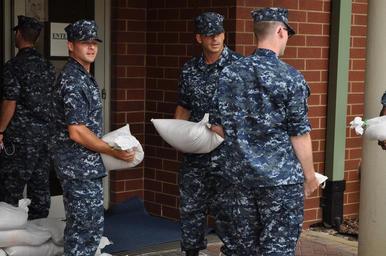 | Keywords: Hurricane prep for NAS Pensacola 120827-N-IM980-005.jpg en Students at Naval Air Technical Training Center on board Naval Air Station Pensacola prepare for Tropical Storm Isaac by placing sandbags around the training center The storm is expected to make landfall along the Gulf Coast late Tuesday evening The last major storm to affect Northwest Florida was Hurricane Dennis a category three hurricane which made landfall near Pensacola July 10 2005 2012-08-27 Photo by Senior Chief Aviation Electrician's Mate Thomas Hebert/Released https //www dvidshub net/image/653690 120827-N-IM980-005 2012-08-29 04 03 PENSACOLA FL US PD-USGov-Military-Navy Naval Air Station Pensacola Images from DoD uploaded by Fæ |