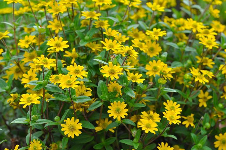Keywords: hussar buttons flower blossom bloom yellow plant