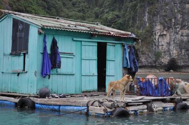 Keywords: hut fisherman's hut floating village halong bay water