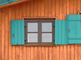 Keywords: hut log cabin window shutters