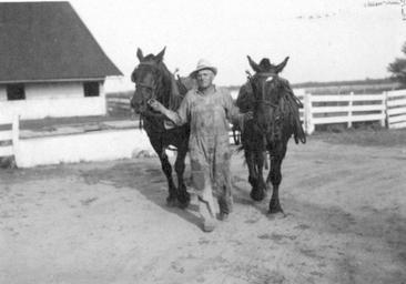 | Keywords: mennonite community agriculture farming animals mennonitecommunityagriculturefarminganimals harry diener harrydiener horse hutchinson kansas blackandwhite monochrome outdoor sport riding animal black and white Caption: June, 1947. Hutchinson, Kansas. Harry Diener and team in from the field. Citation: Mennonite Community Photographs, 1947-1953. Farm Animals. HM4-154. Boxes 2-3 Photo 411.0-8. Mennonite Church USA Archives - Goshen. Goshen, Indiana. Caption: June, 1947. Hutchinson, Kansas. Harry Diener and team in from the field. Citation: Mennonite Community Photographs, 1947-1953. Farm Animals. HM4-154. Boxes 2-3 Photo 411.0-8. Mennonite Church USA Archives - Goshen. Goshen, Indiana. |