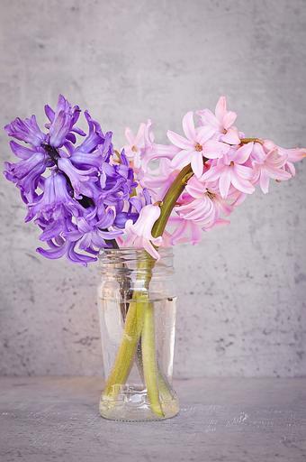 Keywords: hyacinth pink blue flower pink flower blue flower fragrant flower flowers schnittblume spring flower vase glass deco decoration spring still life close flowers photography fragrant scented plant pink hyacinth hyacinthus orientalis pink flowers blue flowers