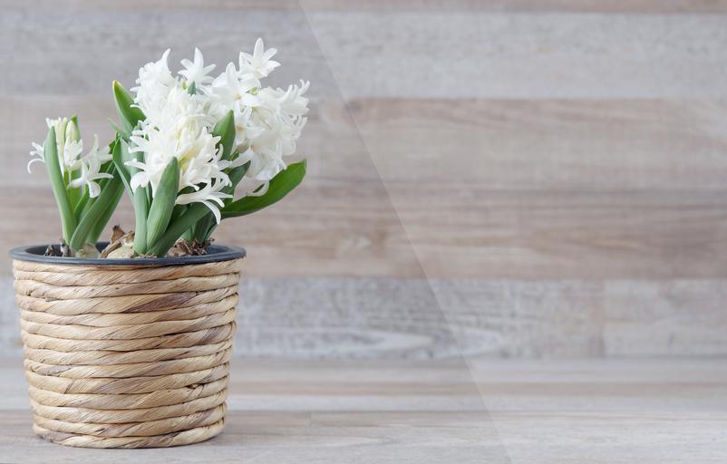 Keywords: hyacinthus orientalis hyacinth flower flowers white spring flower fragrant flower plant flowerpot spring close text freedom negative space
