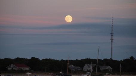 Keywords: hyannis port usa sunset sky abendstimmung clouds water evening sky moon