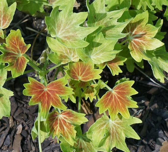 Keywords: hybrid variegated geranium plant garden leaves green orange variegated nature