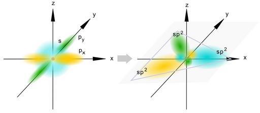 Keywords: Hybrydyzacja sp2.svg en Hybridization sp2 pl Hybrydyzacja sp2 own Joanna Kośmider 2011-06-22 Hybridized atomic orbitals