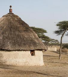 Keywords: En pojke på väg att ta genvägen ut. et byggnader oromia etiopien hyddor platserallmänna