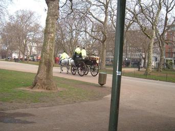 Keywords: Hyde Park.JPG Horses and wagon in Hyde Park London England own 2006-03-13 MHV Hyde Park London 2006 in the City of Westminster March 2006 in London Horse-drawn vehicles in London