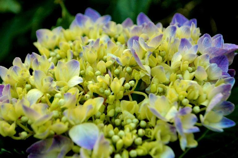 Keywords: hydrangea purple flowers hydrangeas bloom nature petals plant leaf pastel flower leaves spring round blossom