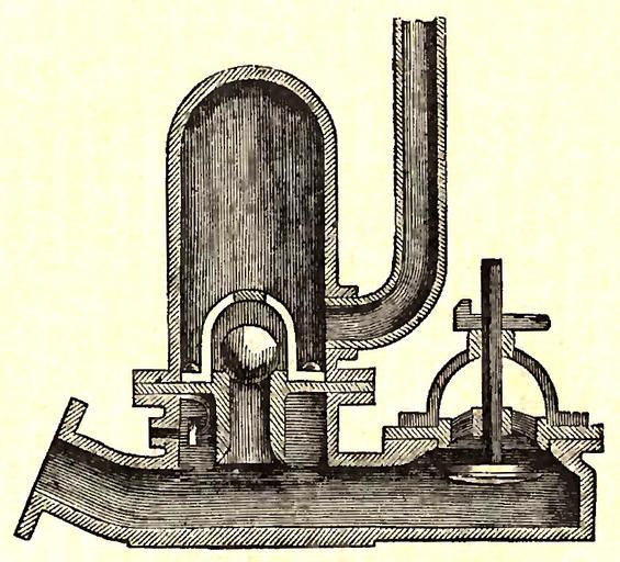 | Keywords: Hydraulic Ram Easton and Amos 1851.jpg en Hydraulic ram as shown by Messrs Easton Amos of Great Guilford Street Southwark at the Great Exhibition at Crystal Palace 1851 de Verbesserter Hydraulische Widder wie er von den Herren Easton und Amos während der Weltausstellung im Crystal Palace 1851 gezeigt wurde Joseph Glynn Rudimentary Treatise on the Power of Water 17th Edition Fig 39 partial Dr Mirko Junge 1885 PD-old Hydraulic rams Cross sections of valves The Great Exhibition | ||||